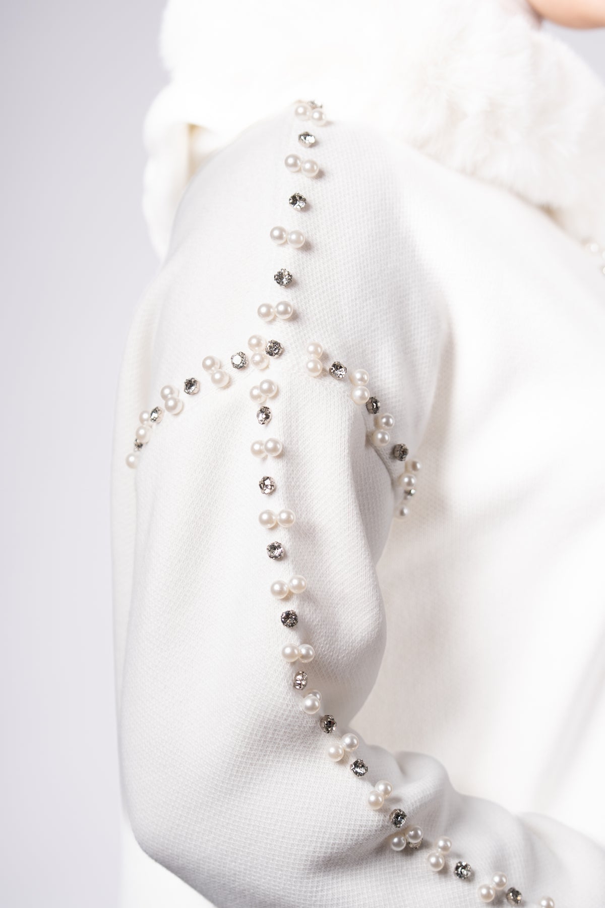 Design: Two-piece set with pearl embellishments