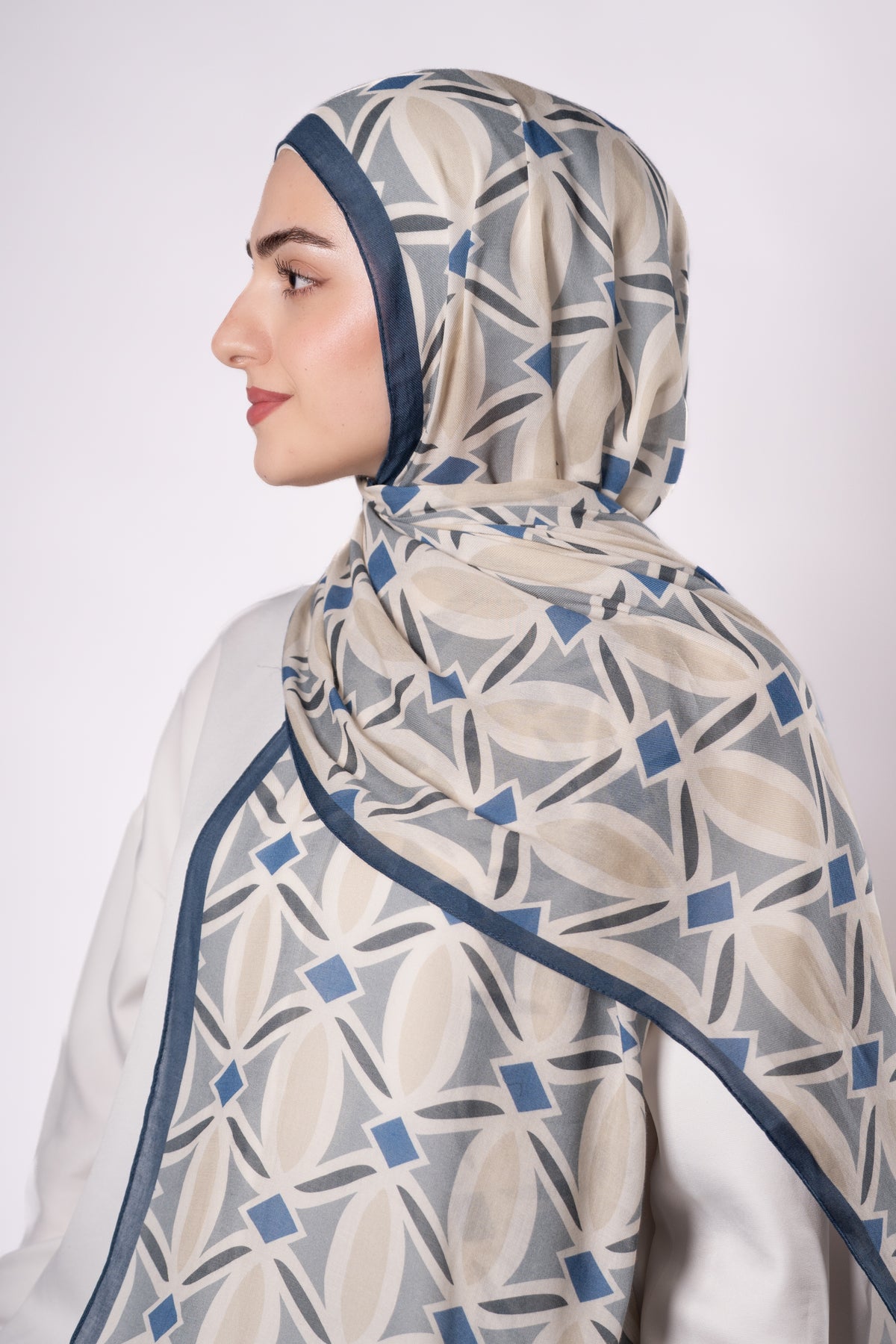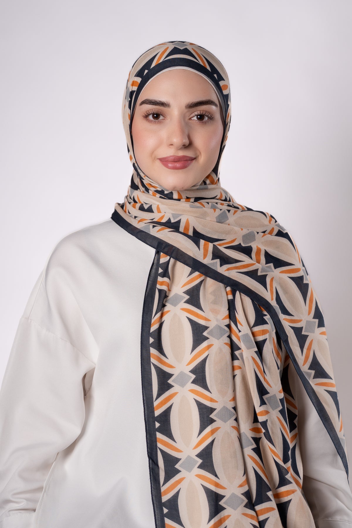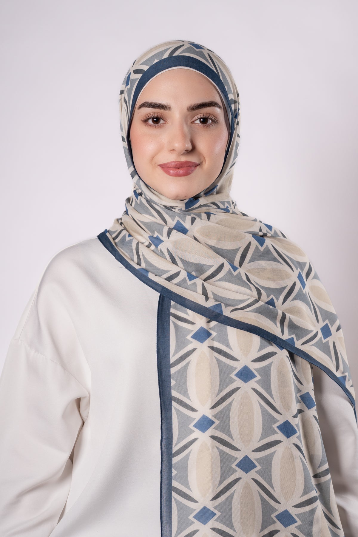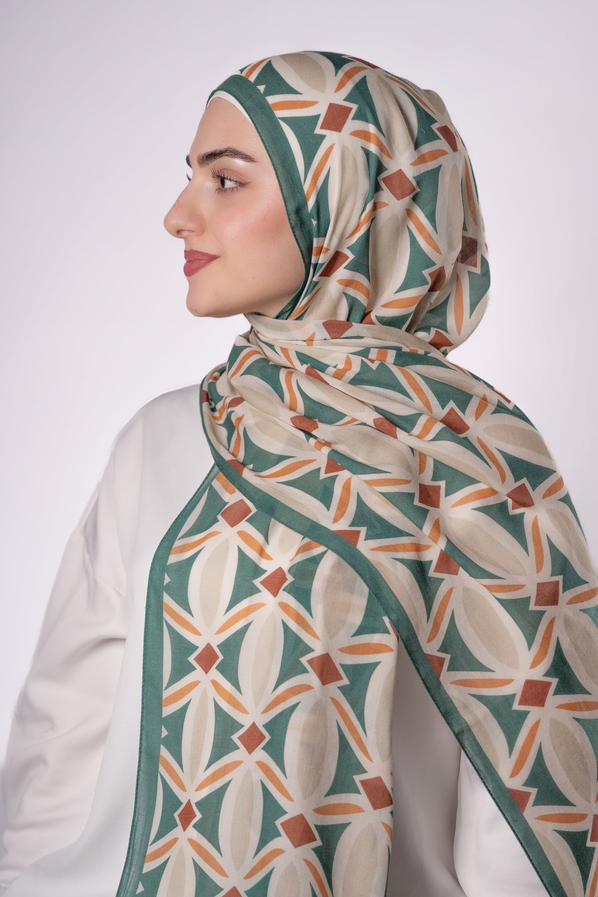 Made from a 40% silk and 60% cotton blend, this shawl combines the soft sheen of silk with the natural structure of cotton. Its harmonious colors make it a versatile piece for any occasion.