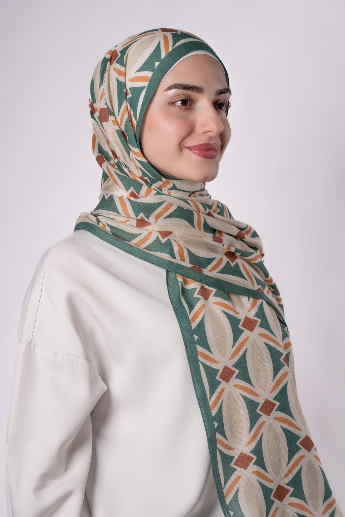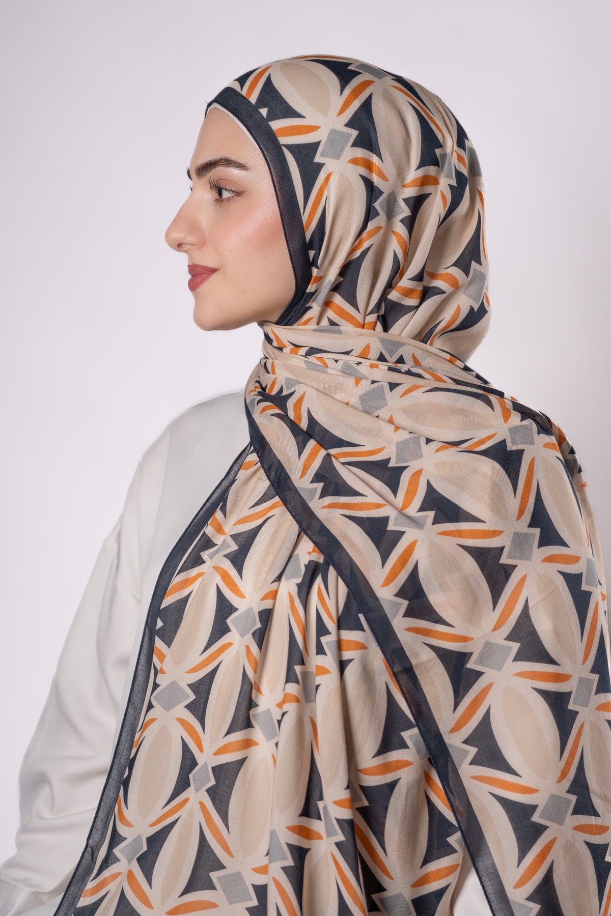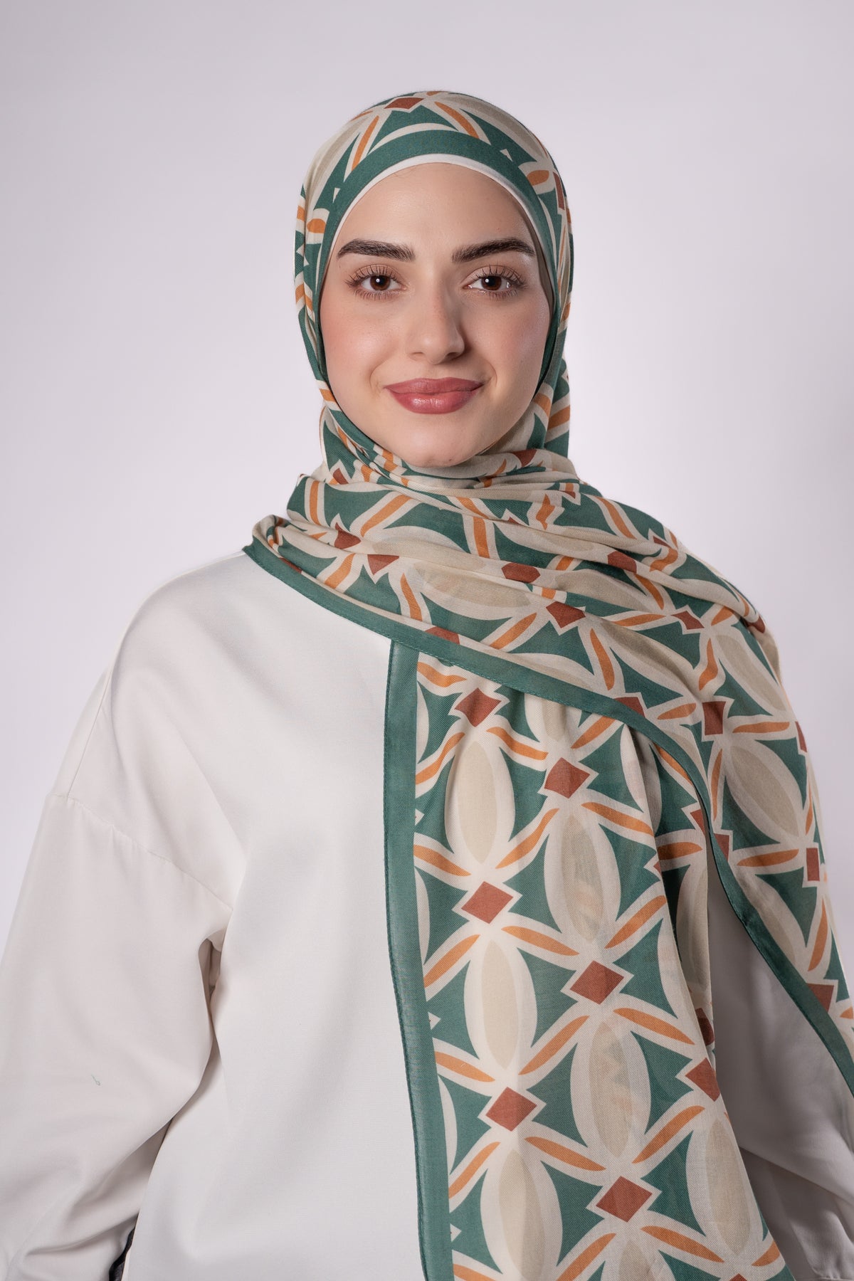 Made from a 40% silk and 60% cotton blend, this shawl combines the soft sheen of silk with the natural structure of cotton. Its harmonious colors make it a versatile piece for any occasion.
