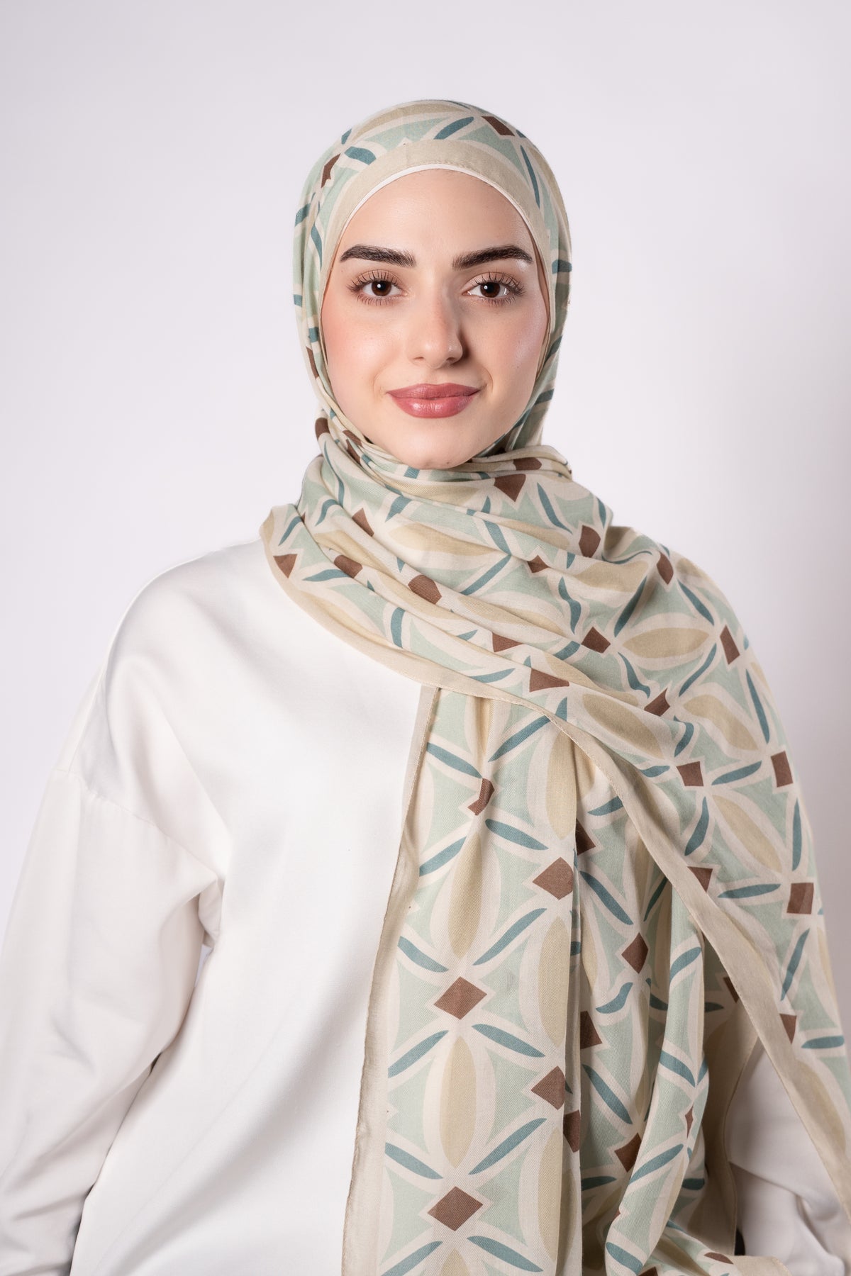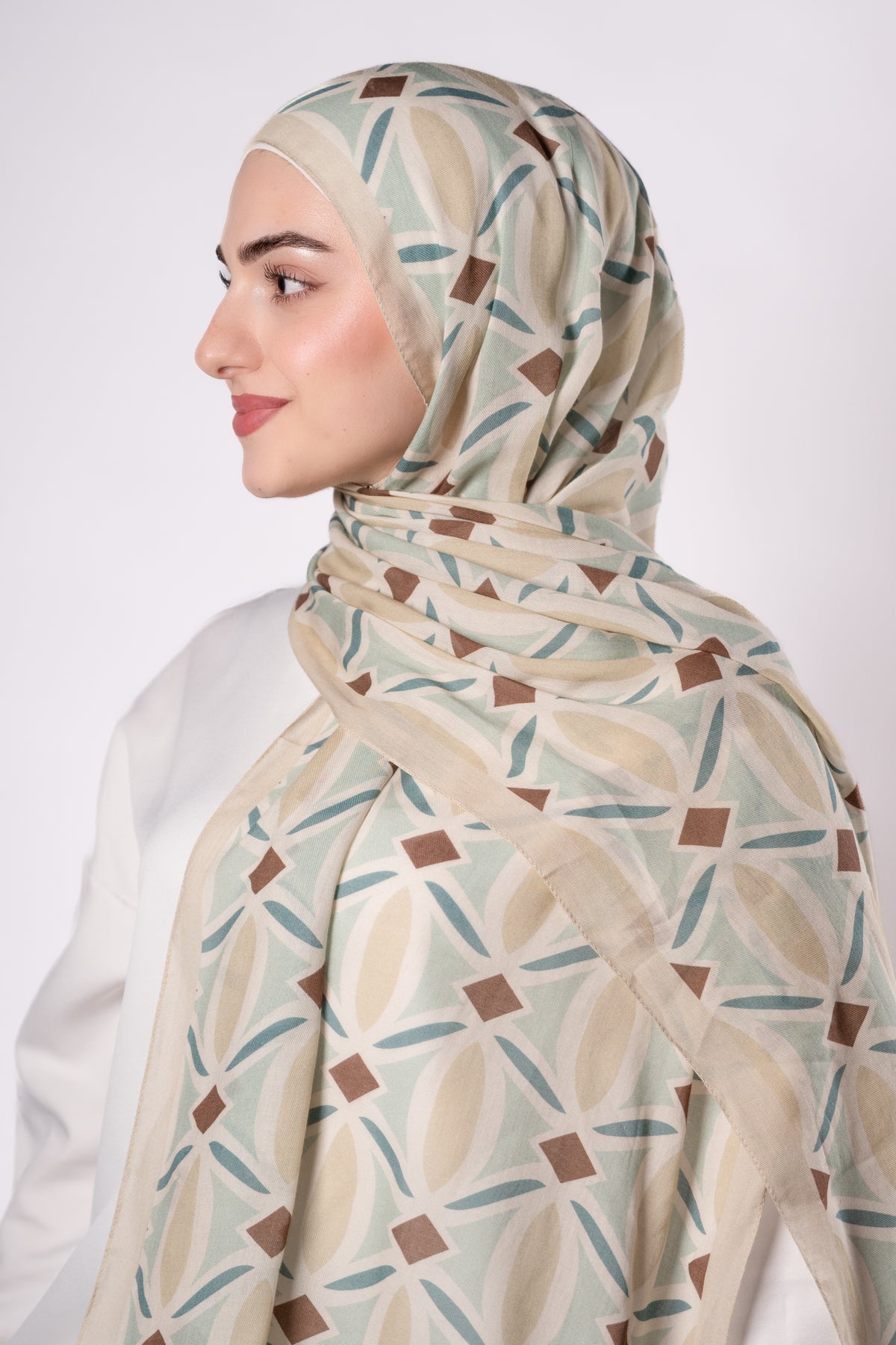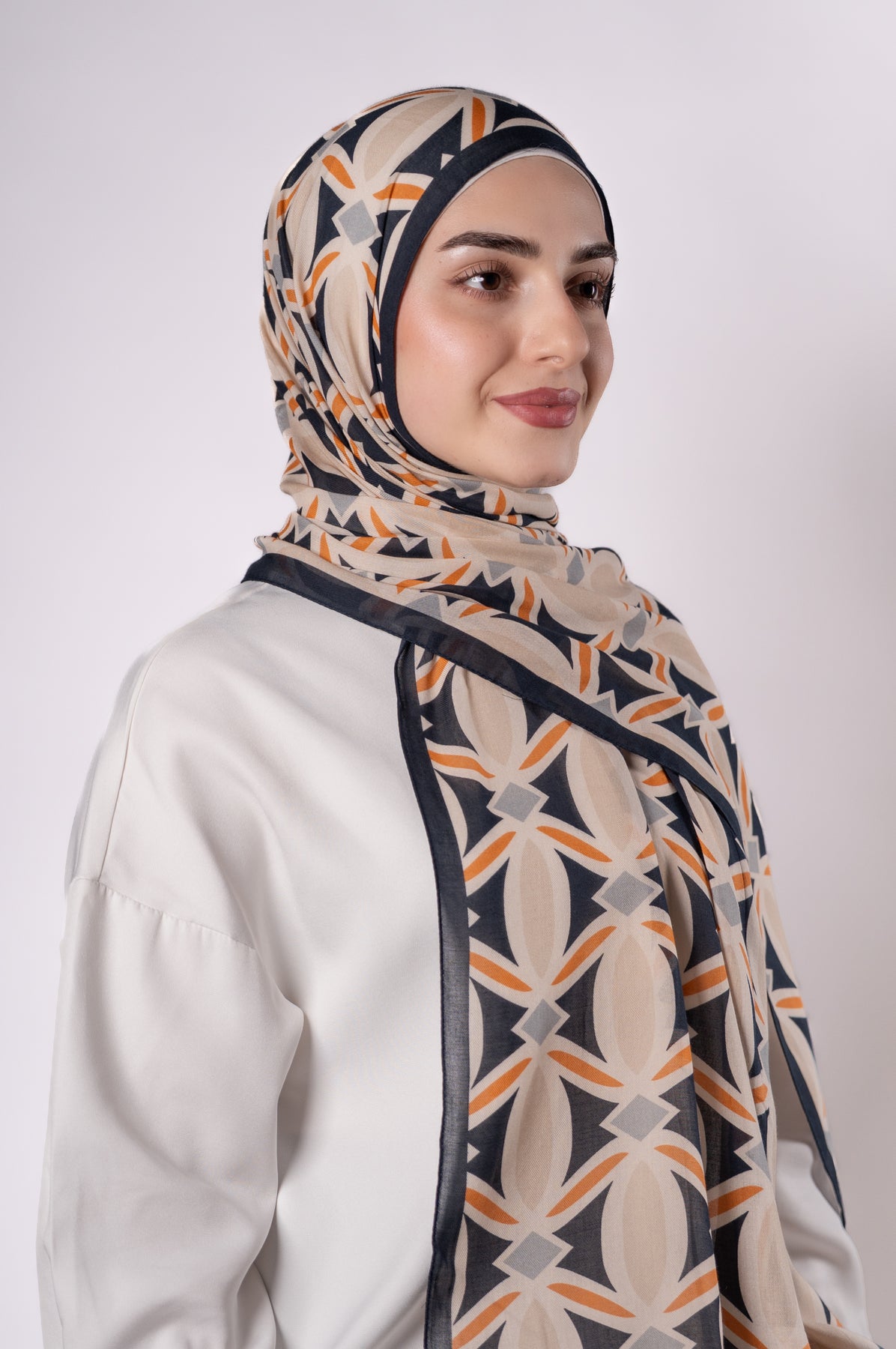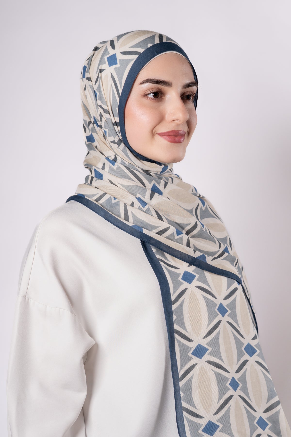 Made from a 40% silk and 60% cotton blend, this shawl combines the soft sheen of silk with the natural structure of cotton. Its harmonious colors make it a versatile piece for any occasion.