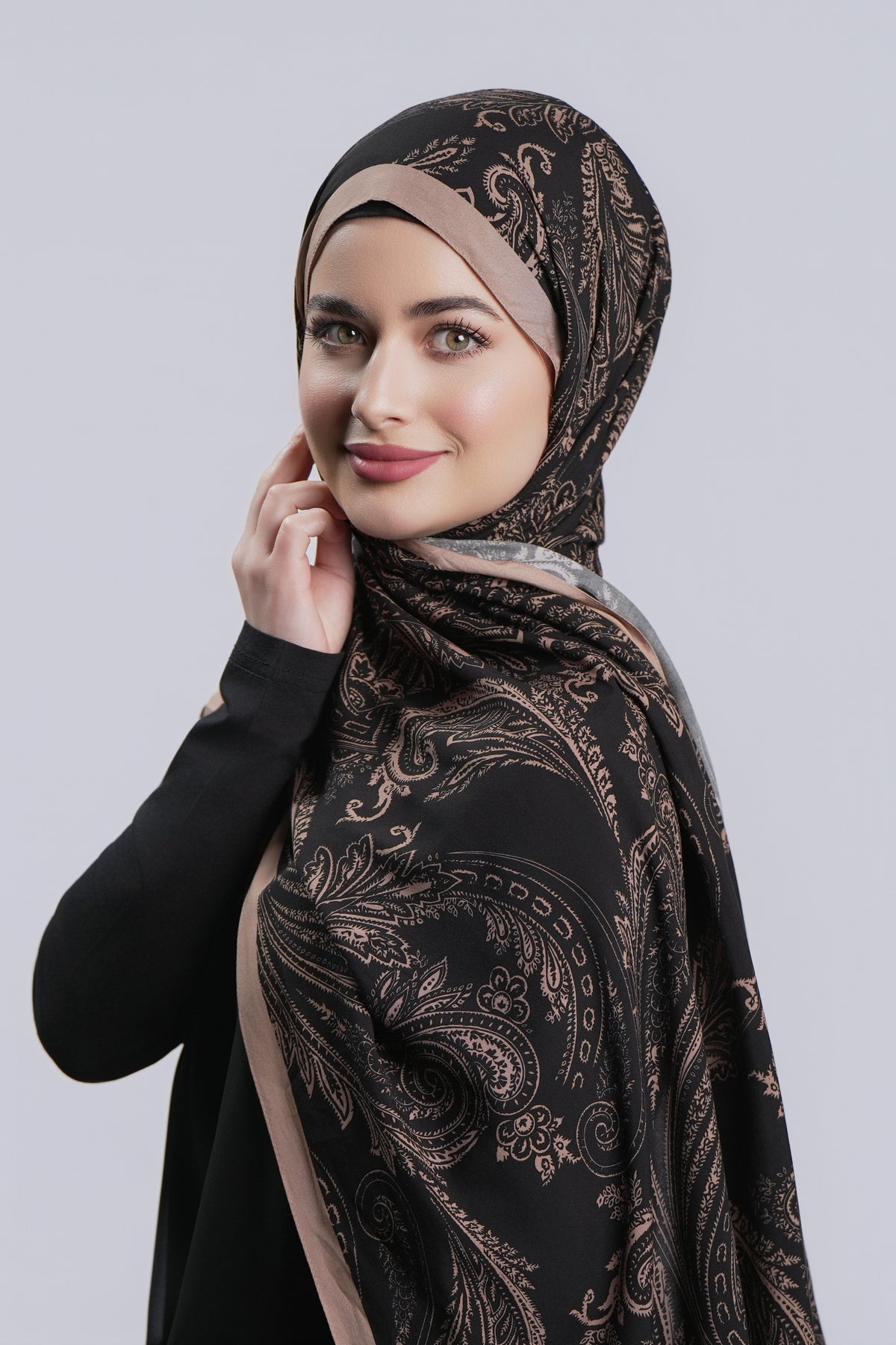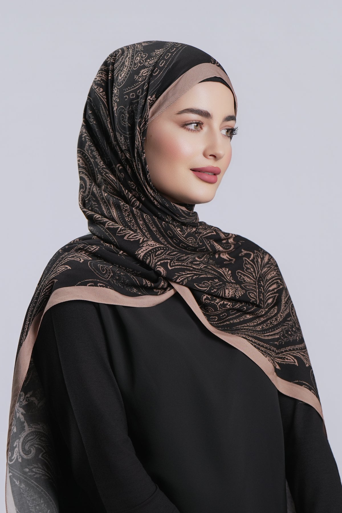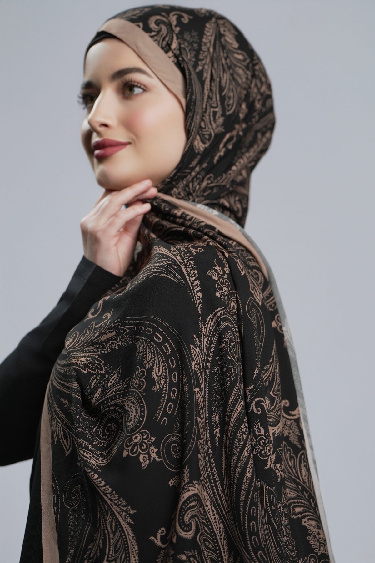 Made from a 40% silk and 60% cotton blend, this shawl combines the soft sheen of silk with the natural structure of cotton. Its harmonious colors make it a versatile piece for any occasion.