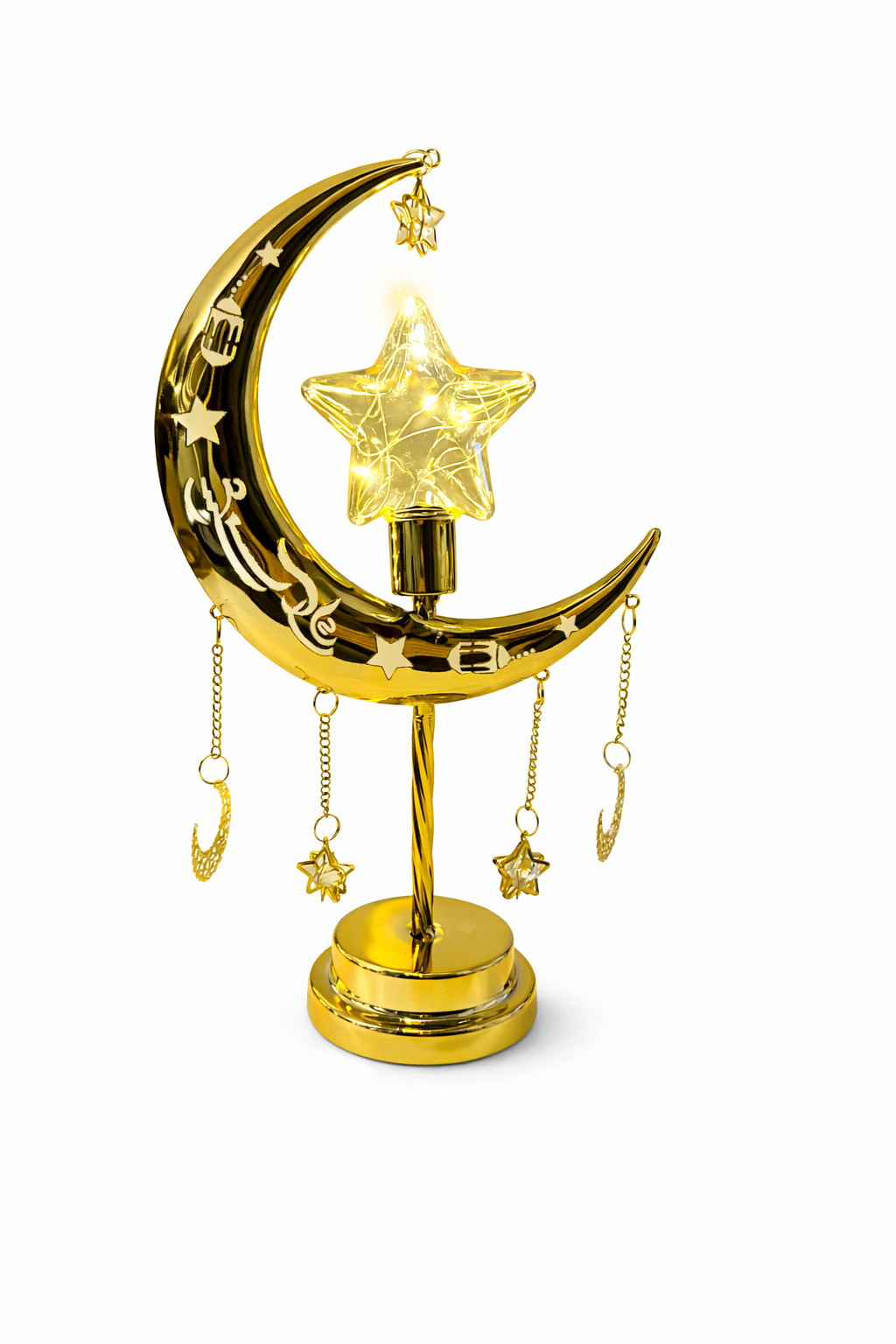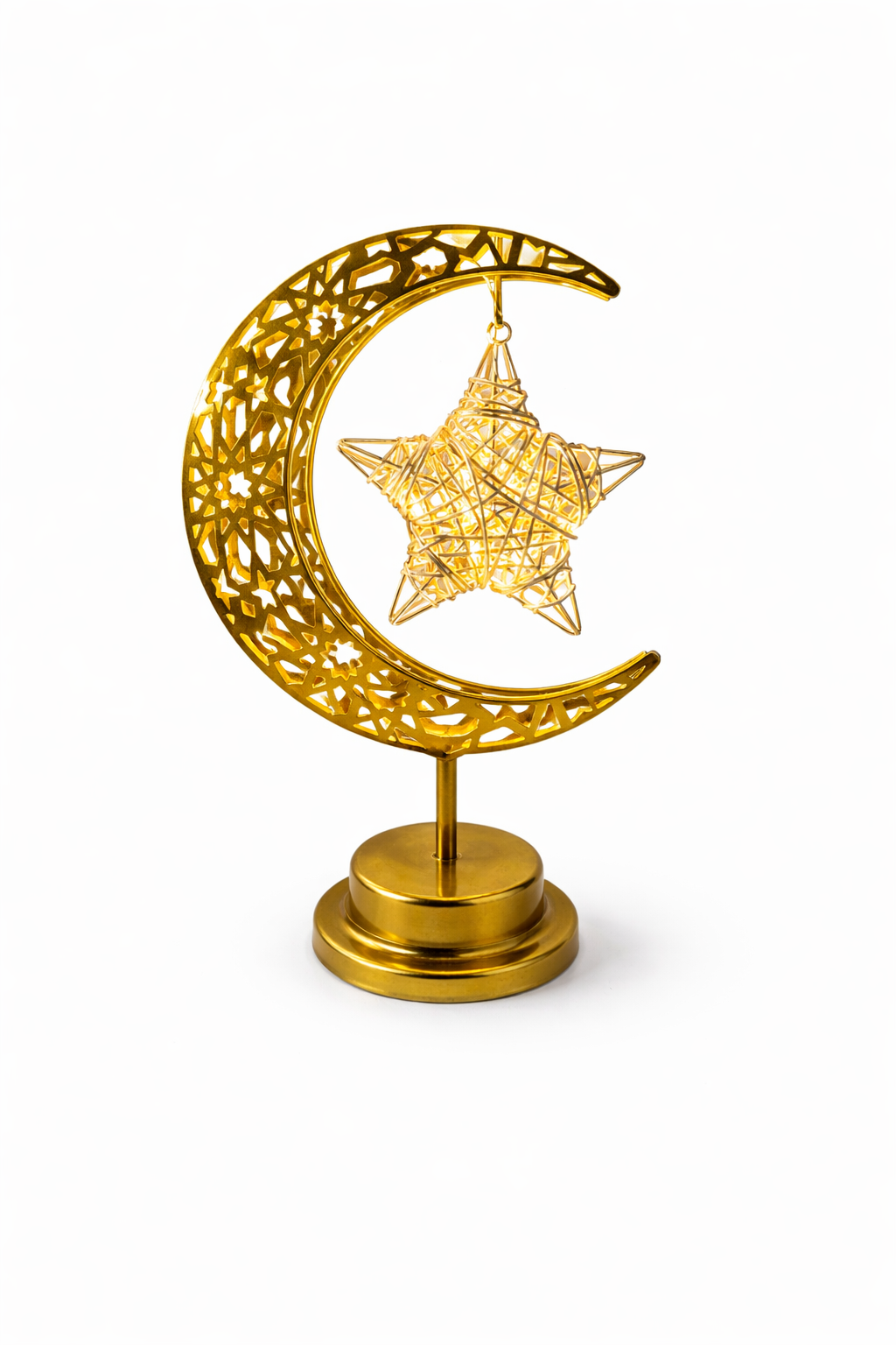 Gold Crescent Moon & Star LED Lamp