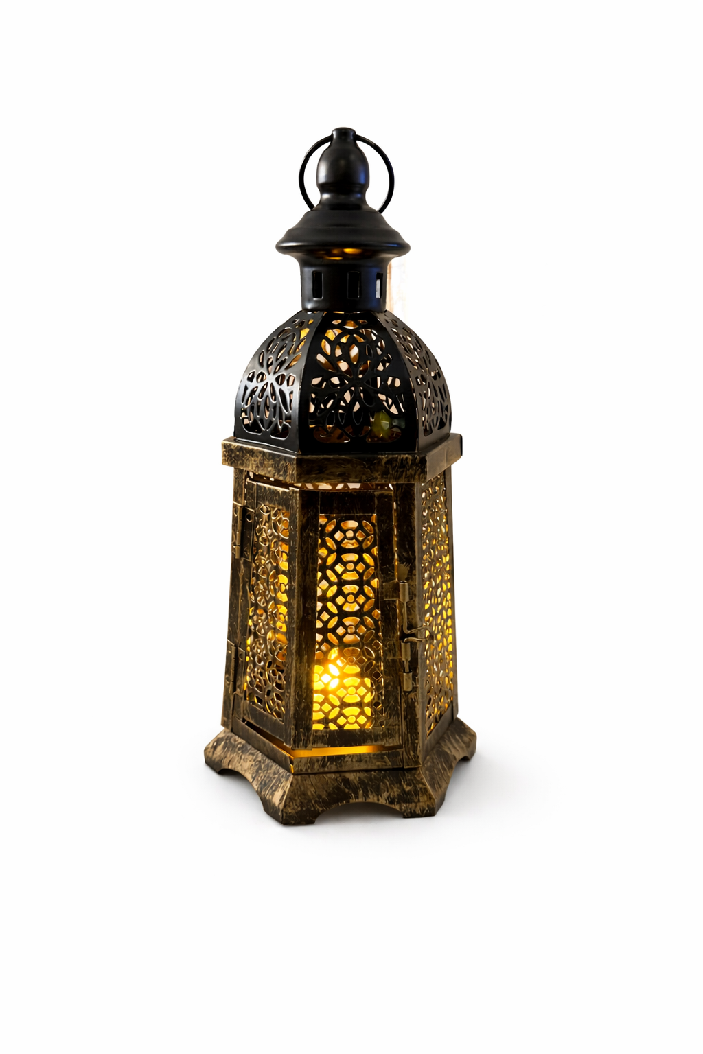 Black & Gold Moroccan LED Lantern
