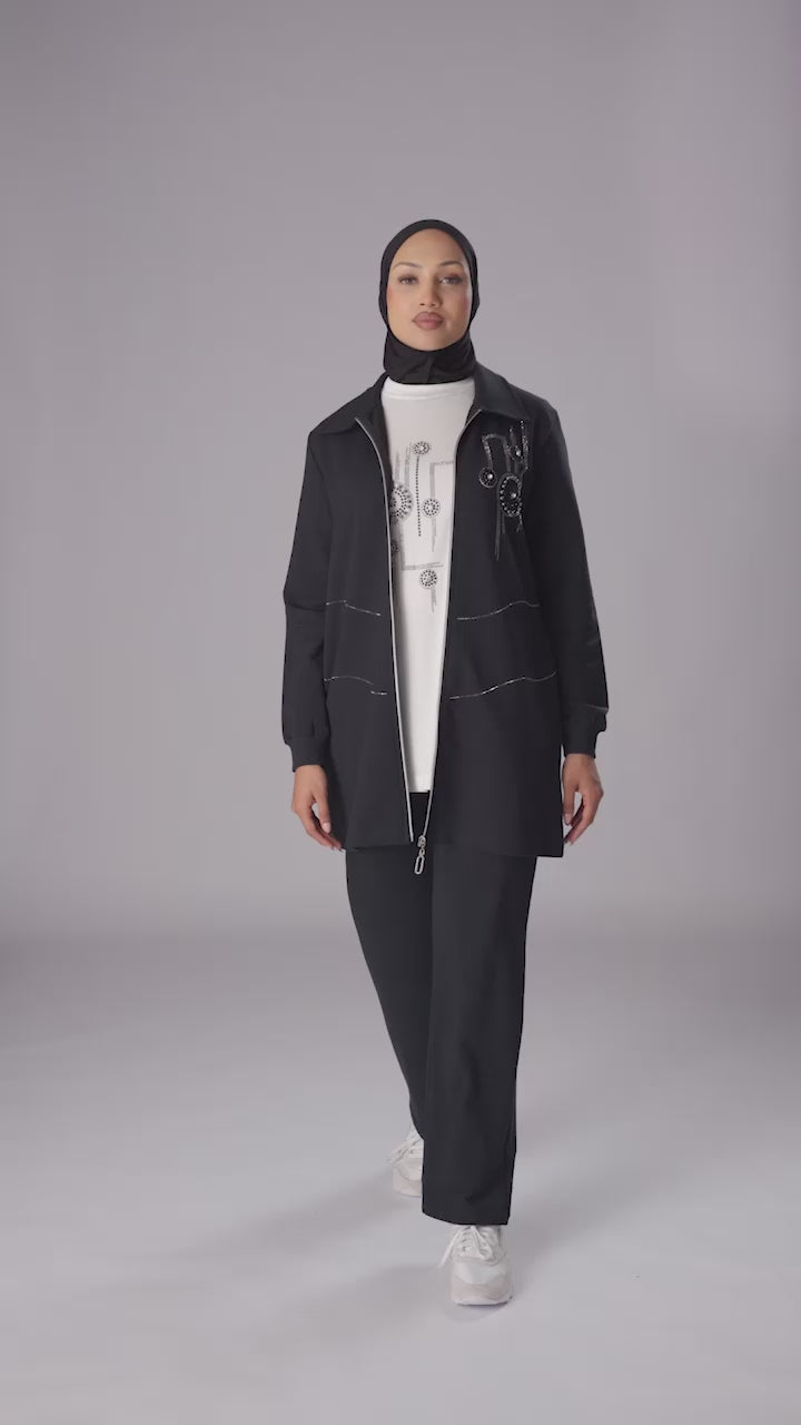 Stay effortlessly stylish and comfortable with our Two-Piece Modest Casual Set. This chic outfit features a relaxed-fit jacket adorned with delicate bead embellishments on the front, paired with straight-leg trousers for an elegant, coordinated look. Made from soft, breathable fabric, it offers all-day comfort while keeping a sophisticated edge.