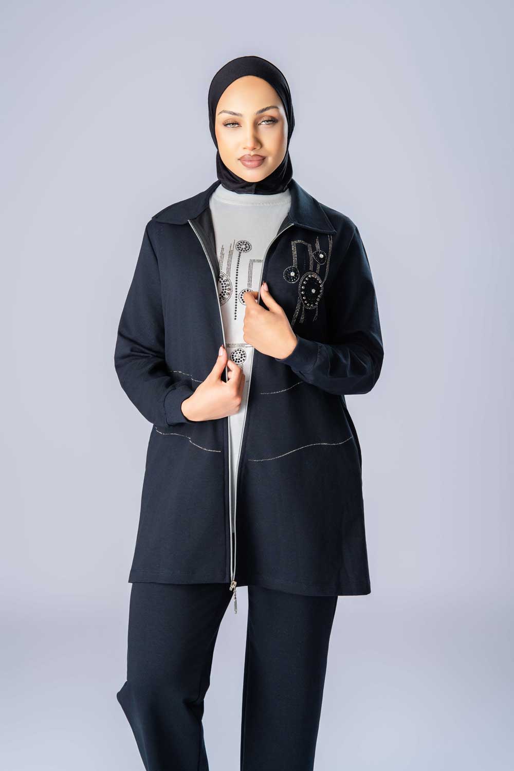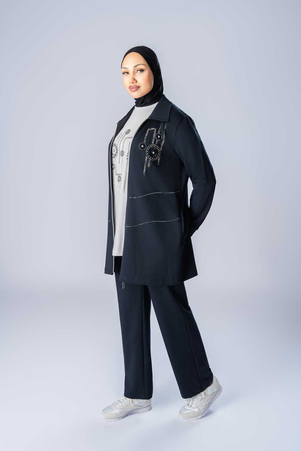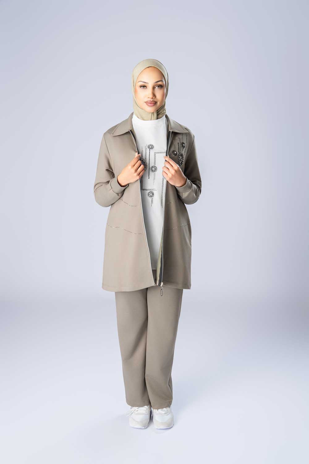 Stay effortlessly stylish and comfortable with our Two-Piece Modest Casual Set. This chic outfit features a relaxed-fit jacket adorned with delicate bead embellishments on the front, paired with straight-leg trousers for an elegant, coordinated look. Made from soft, breathable fabric, it offers all-day comfort while keeping a sophisticated edge.
