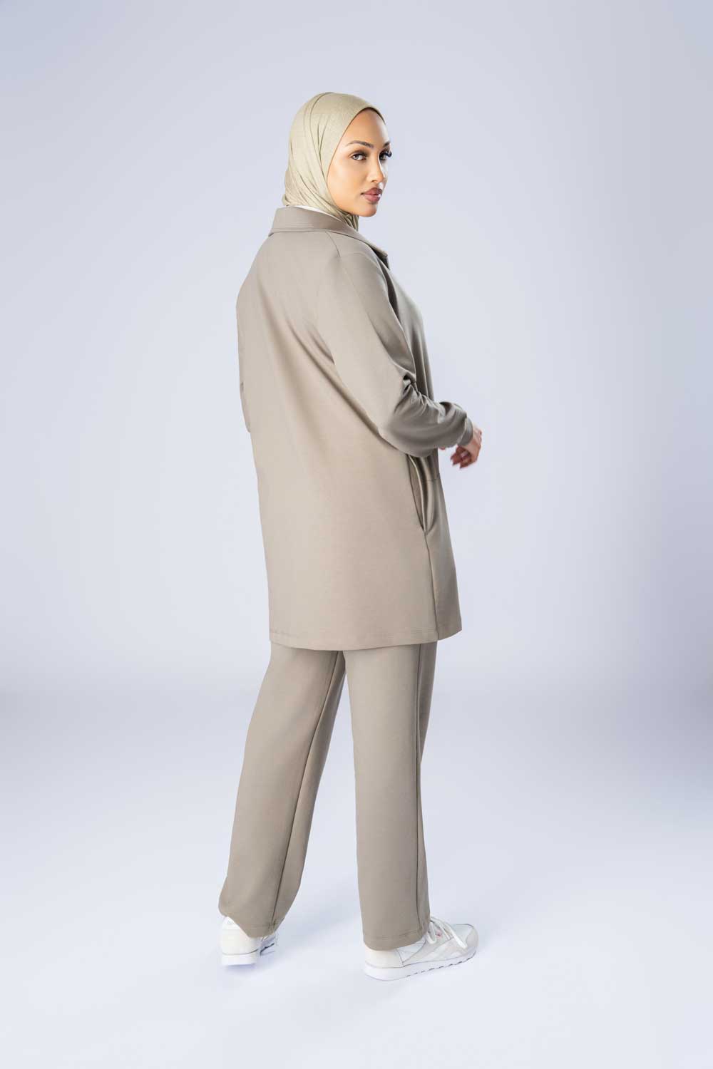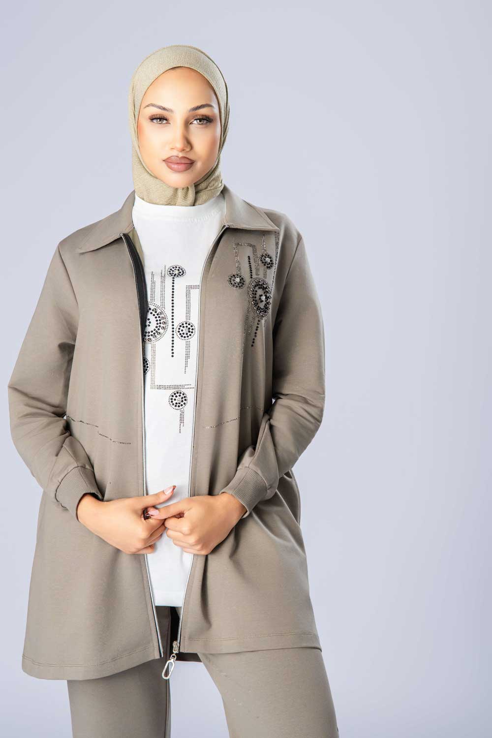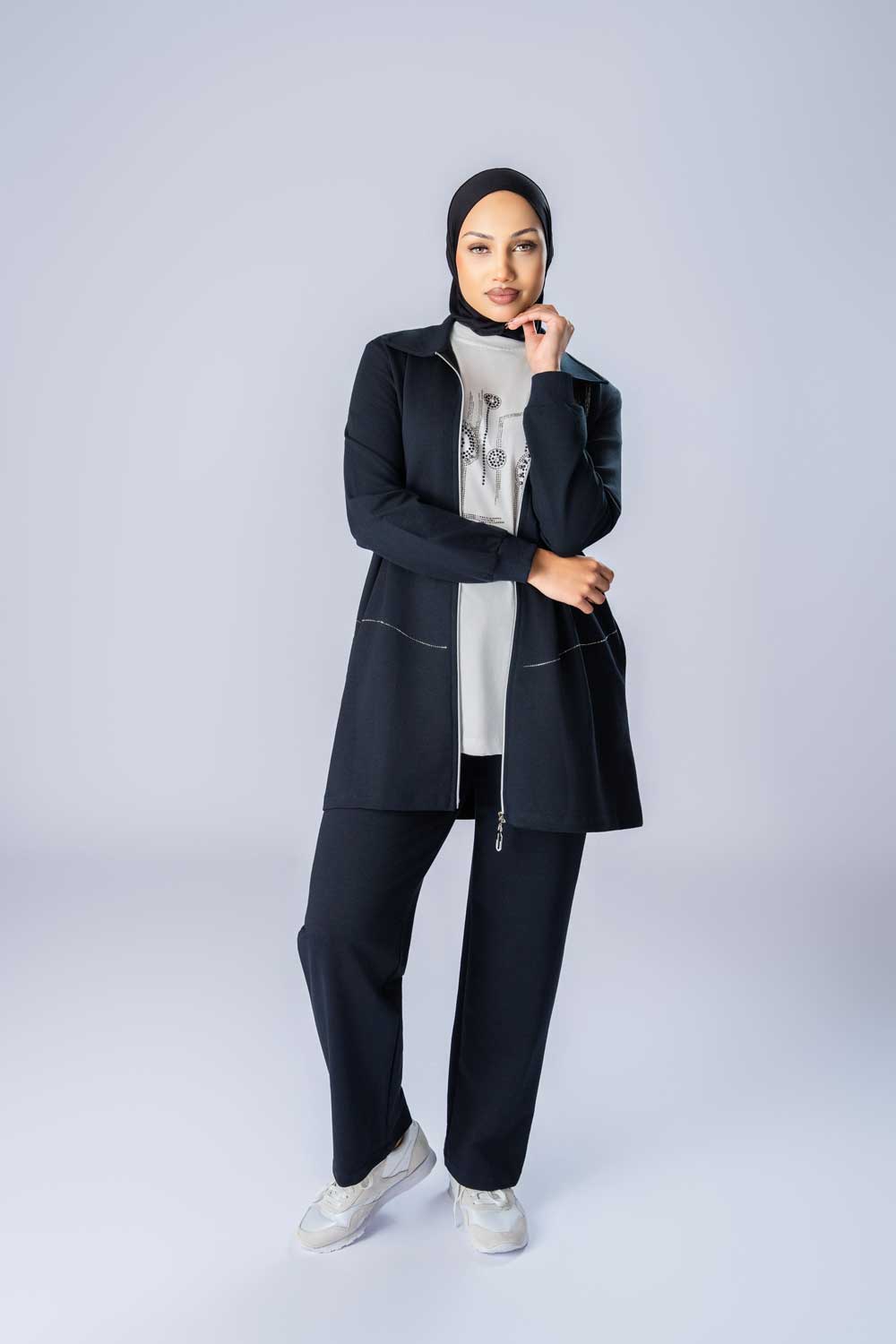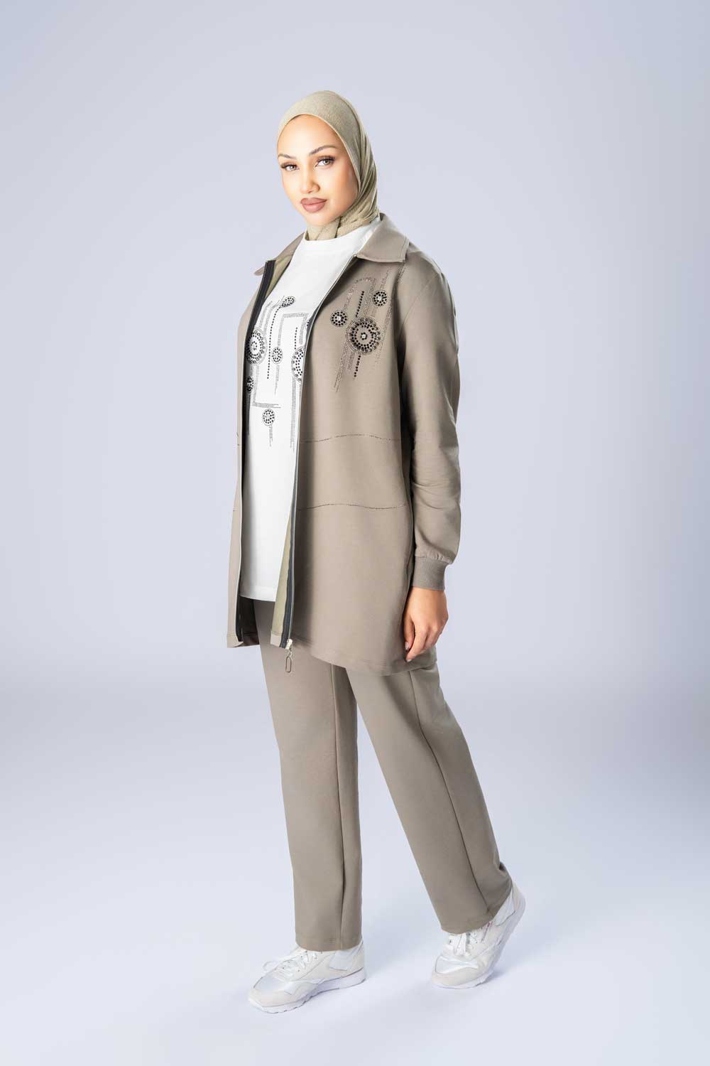 Stay effortlessly stylish and comfortable with our Two-Piece Modest Casual Set. This chic outfit features a relaxed-fit jacket adorned with delicate bead embellishments on the front, paired with straight-leg trousers for an elegant, coordinated look. Made from soft, breathable fabric, it offers all-day comfort while keeping a sophisticated edge.